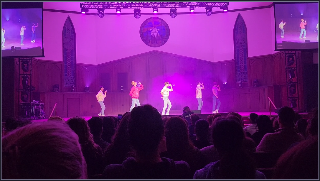 The annual Mock Rock lip-sync competition returned Friday night, Nov. 14, drawing one of its largest crowds in recent years. The free event, hosted by the Student Events and Activities office, began at 7:30 p.m. in the Cathedral. By 6 p.m., the line stretched so far it nearly reached the library.